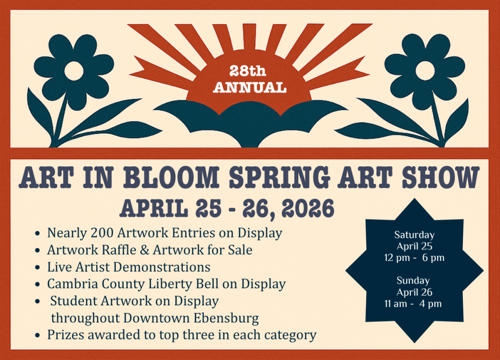 Items can be dropped at either the Ebensburg Borough building by this Friday, October 3rd at 4 pm, or at the Cambria County Historical Society by Saturday, October 4th by 1 pm.